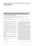 [en] BACKGROUND: Physician's perception of quality of life of patients with cancer is unclear. No reports have evaluated its influence on patient management. METHODS: Five hundred otolaryngologists completed a questionnaire regarding the quality of life of patients with head and neck cancer. RESULTS: Seventy-eight percent of responders thought that quality of life must be considered when choosing treatment, even if this meant decreased survival. Seventy-five percent thought it justified to withhold curative treatment if this would lead to impaired quality of life. Pain and breathing were the most important symptoms to consider. The perception was worse for physicians practicing in Latin culture, working in private practice, or with no personal acquaintance with a head and neck cancer victim and was better after radiotherapy than after surgery and chemotherapy. CONCLUSION: Quality of life is important for physicians and is considered as essential as survival by many physicians. The perception of patient's quality of life influences the treatment choice.