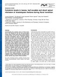[en] Understanding the complete picture of floral transition is still impaired by the fact that physiological studies mainly concern plant species whose genetics is poorly known, and vice versa. Arabidopsis thaliana has been successfully used to unravel signalling pathways by genetic and molecular approaches, but analyses are still required to determine the physiological signals involved in the control of floral transition. In this work, the putative role of cytokinins was investigated using vegetative plants of Arabidopsis (Columbia) induced to flower synchronously by a single 22 h long day. Cytokinins were analysed in leaf extracts, leaf phloem exudate and in the shoot apical meristem at different times during floral transition. It was found that, in both the leaf tissues and leaf exudate, isopentenyladenine forms of cytokinins increased from 16 h after the start of the long day. At 30 h, the shoot apical meristem of induced plants contained more isopentenyladenine and zeatin than vegetative controls. These cytokinin increases correlate well with the early events of floral transition.