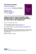 [en] Various cases of human beings ‘dedicated’ to deities are attested in Greek epigraphic evidence. Are these kinds of offerings comparable to the dedication of inanimate objects? Besides, does the fact that someone is said to be ‘sacred’ to a specific deity necessarily involve that he went through a process of dedication? This article aims at providing a global picture of different situations in which processes of dedications took place. Among the several issues that are tackled, the cornerstone of this article consists of two questions: for what purposes did some people decide to consecrate a human being to a deity and what were the consequences for the consecrated individuals on religious and social levels? Different categories of persons will be contrasted, in terms of processes through which they acquire their new status but also in terms of the freedom/lack of freedom which is conveyed by this new status. It will also be shown that, as far as method is concerned, it is necessary to complete a lexical analysis with a contextual perspective for a deeper understanding of the problem.