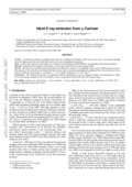 [en] Context: If relativistic particle acceleration takes place in colliding-wind binaries, hard X-rays and gamma-rays are expected through inverse Compton emission, but to date these have never been unambiguously detected. Aims: To detect this emission, observations of eta Carinae were performed with INTEGRAL, leveraging its high spatial resolution. Methods: Deep hard X-ray images of the region of eta Car were constructed in several energy bands. Results: The hard X-ray emission previously detected by BeppoSax around eta Car originates from at least 3 different point sources. The emission of eta Car itself can be isolated for the first time, and its spectrum unambiguously analyzed. The X-ray emission of eta Car in the 22-100 keV energy range is very hard (Gamma ~= 1 ± 0.4) and its luminosity is 7 × 10^33 erg s^-1. Conclusions: The observed emission is in agreement with the predictions of inverse Compton models, and corresponds to about 0.1% of the energy available in the wind collision. eta Car is expected to be detected in the GeV energy range.