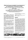 [en] Cotton is the first export crop in Mali with CFAF 84,370 billion in 2010 (INSTAT, 2010), but the production of this crop faces huge problems due to external and internal factors. This work is carried out in an economic context where action has been taken to boost cotton production in Mali. The objective of this work is to analyze the effects of the incentive policy for cotton production on agricultural farms in Mali. The investigations were conducted among 240 farms in the CMDT regions on a two villages per region basis in 2008/09, 2010 and 2011/12. The results showed a positive trend in production (mainly due to an increase in the area) and income for cotton producers with a higher reimbursement rate of input credits. These incentive measures, favored by the world price of cotton fiber, have created a great motivation for producers to expand cropping areas in order to increase their production and income but with low yields. [fr] Le coton constitue le premier produit agricole d’exportation, pour le Mali, avec 84,370 milliards F CFA en 2010 (INSTAT, 2010). La production de cette culture connaît d’énormes problèmes d’origines tant externes qu’internes. Ce travail intervient dans une situation conjoncturelle où des mesures ont été prises pour accroître la production cotonnière au Mali. L’objectif de ce travail est d’analyser les effets de facteurs incitatifs à la production cotonnière sur les exploitations agricoles au Mali. Des enquêtes ont été réalisées auprès d’un échantillon de 240 exploitations dans les quatre zones CMDT (Compagnie Malienne pour le Développement du Textile) à raison de deux villages par zone en 2008/2009, 2010/2011 et 2011/2012. Les résultats ont montré une évolution positive des productions (essentiellement due à une augmentation des superficies), et du revenu coton des producteurs ainsi qu’un taux de remboursement plus élevé des crédits intrants. Les mesures incitatives favorisées par le prix mondial de la fibre du coton ont créé une réelle motivation chez les producteurs à faire plus de superficie, d’où une augmentation de production et du revenu, mais avec une faible augmentation du rendement.