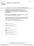 [en] Movement patterns during landing have been suggested to be related to injury risk. The purpose of this study was to determine the inter-session reliability of kinematic variables and ground reaction forces during landing in a population of male recreational athletes after a counter movement jump. Both unipodal and bipodal landings were evaluated. Furthermore, the possibility to improve landing reliability with a verbal instruction was also studied. Twenty- four male volunteers with no history of lower-extremity trauma were randomly assigned to two groups (with and without verbal landing instruction). An optoelectronic 3D system and force plates were used to measure the lower-limb joint angles and the ground reaction forces during landing. Intraclass correlation values show moderate to excellent inter-session reliability for the bipodal task (ICC average: 0.80, range: 0.46 to 0.97) and poor to excellent reliability for the unipodal task (ICC average: >0.75, range: 0.20 to 0.95). However, large standard errors of measurement values at the ankle joint at impact (27.6 ± 11.5°) and for the vertical ground reaction forces (394 ± 1091 N) show that some variables may not be usable in practice. The verbal instruction had a negative effect on the reliability of unipodal landing but improved the reliability of bipodal landing. These findings show that the reliability of a landing task is influenced by its motor complexity as well as the instruction given to the subject.