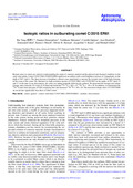 [en] Isotopic ratios in comets are critical to understanding the origin of cometary material and the physical and chemical conditions in the early solar nebula. Comet C/2015 ER61 (PANSTARRS) underwent an outburst with a total brightness increase of 2 magnitudes on the night of 2017 April 4. The sharp increase in brightness offered a rare opportunity to measure the isotopic ratios of the light elements in the coma of this comet. We obtained two high-resolution spectra of C/2015 ER61 with UVES/VLT on the nights of 2017 April 13 and 17. At the time of our observations, the comet was fading gradually following the outburst. We measured the nitrogen and carbon isotopic ratios from the CN violet (0, 0) band and found that [SUP]12[/SUP]C/[SUP]13[/SUP]C = 100 ± 15, [SUP]14[/SUP]N/[SUP]15[/SUP]N = 130 ± 15. In addition, we determined the [SUP]14[/SUP]N/[SUP]15[/SUP]N ratio from four pairs of NH[SUB]2[/SUB] isotopolog lines and measured [SUP]14[/SUP]N/[SUP]15[/SUP]N = 140 ± 28. The measured isotopic ratios of C/2015 ER61 do not deviate significantly from those of other comets.