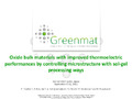[en] Since decades, thermoelectricity is deeply studied as no-waste energy source. Thermoelectric (TE) materials allow the direct transformation of a heat source into an electrical current (Seebeck effect). TE conversion is very attractive as it is the strongest candidate for producing electricity from waste heat energy sources (automobiles, incinerators, boilers, …). For TE applications at high temperatures, oxide compounds like In2O3, Ca3Co4O9, Bi2Sr2Co2Ox or CaMnO3, have attracted attention, in particular due to their natural oxidation resistance. However, the performances of actual TE oxides must be improved for manufacturing efficient TE generators. For that purpose, an accurate control of micro and nanostructure is required for optimizing the electrical and/or thermal transport properties of TE materials. This can be achieved through the development of innovative powder synthesis techniques, like sol-gel process.