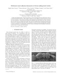 [en] In this experimental study, living dock beetles are observed during their free upside-down walk on a smooth horizontal substrate. Their weight is balanced by the adhesion of hairy structures present on their tarsomeres. The motions involved in the attachment and detachment of these structures were characterized by simultaneously imaging the beetle from the side at the body scale, and from the top at the scale of a single tarsal chain. The observed multi-scale three-dimensional kinematics of the tarsi is qualitatively described, then quantified by image processing and physically modelled. A strong asymmetry is systematically observed between attachment and detachment kinematics, in terms of both timing and directionality. © 2017 The Author(s) Published by the Royal Society. All rights reserved.