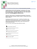 [en] AbstractOne new limonoid, trigilgianin (1), one new phenyl alkene, epoxy gilgialkene (2), together with five known compounds: scopoletin (3), sitosteryl-6’-O-undecanoate-β-D-glucoside (4), sitosteryl-O-β-D-glucopyranoside (5), cinchonain A (6) and cinchonain B (7) were isolated from the stem bark of Trichilia gilgiana Harms. (Meliaceae). All compounds were isolated for the first time from this species. The structures were elucidated on the basis of spectral studies and by comparison of these data with those from the literature. Compounds 1, 2, 3, 6 and 7 were tested for in vitro antileishmanial activity against visceral leishmaniasis parasite Leishmania donovani and cytotoxicity against macrophage RAW 264.7 cell line. Compounds 1 and 3 showed the highest antileishmanial activity (IC50 values of 6.044 and 6.804 µg/mL, respectively) with low cytotoxicity (CC50 values of >200 and 47.47 µg/mL, respectively), while compound 2 was moderately active on L. donovani promastigotes (IC50 56.81 µg/mL).