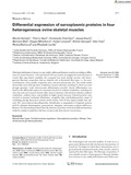 [en] Fiber-type distribution is known to vary widely within and between muscles according to differences in muscle functions. 2-DE and MALDI-MS were used to investigate the molecular basis of muscle fiber type-related variability. We compared four lamb skeletal muscles with heterogeneous fiber-type composition that are relatively rich in fast-twitch fiber types, i.e., the semimembranosus, vastus medialis, longissimus dorsi, and tensor fasciae latae (TL). Our results clearly showed that none of the glycolytic metabolism enzymes detected, including TL which was most strongly glycolytic, made intermuscular differentiation possible. Muscle differentiation was based on the differential expression of proteins involved in oxidative metabolism, including not only citric acid cycle enzymes but also other classes of proteins with functions related to oxidative metabolism, oxidative stress, and probably to higher protein turnover. Detected proteins were involved in transport (carbonate dehydratase, myoglobin, fatty acid-binding protein), repair of misfolding damage (heat shock protein (HSP) 60 kDa, HSP-27 kDa, alpha-crystallin beta subunit, DJ1, stress-induced phosphoprotein), detoxification or degradation of impaired proteins (GST-Pi, aldehyde dehydrogenase, peroxiredoxin, ubiquitin), and protein synthesis (tRNA-synthetase). The fractionating method led to the detection of proteins involved in different functions related to oxidative metabolism that have not previously been shown concomitancy.