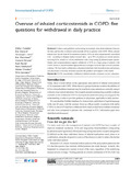[en] Evidence and guidelines are becoming increasingly clear about imbalance between the risks and benefits of inhaled corticosteroids (ICSs) in patients with COPD. While selected patients may benefit from ICS-containing regimens, ICSs are often inappropriately prescribed with – according to Belgian market research data – up to 70% of patients in current practice receiving ICSs, usually as a fixed combination with a long-acting β2-adrenoreceptor agonist. Studies and recommendations support withdrawal of ICSs in a large group of patients with COPD. However, historical habits appear difficult to change even in the light of recent scientific evidence. We have built a collaborative educational platform with chest physicians and primary care physicians to increase awareness and provide guidance and support in this matter