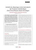 [fr] L’acidose métabolique est une anomalie biologique fréquente et précoce de l’insuffisance rénale chronique (IRC). Les complications liées à cet état sont multiples et touchent notamment l’os, le muscle et le métabolisme protidique, sans parler du risque accru d’hyperkaliémie. Une causalité entre acidose métabolique et accélération du déclin rénal a été démontrée. La mesure du taux de bicarbonate sérique doit, dès lors, faire partie du suivi biologique systématique du patient en IRC dont le taux de filtration glomérulaire s’abaisse en dessous de 50 ml/min/1,73 m². Le dépistage et le traitement de l’acidose métabolique sont en effet simples et peu coûteux. La correction de l’acidose métabolique, notamment par le bicarbonate de sodium, permet de ralentir la progression de l’insuffisance rénale.