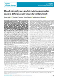 [en] Recently, the Greenland Ice Sheet (GrIS) has become the main source of barystatic sea-level rise. The increase in the GrIS melt is linked to anticyclonic circulation anomalies, a reduction in cloud cover and enhanced warm-air advection. The Climate Model Intercomparison Project fifth phase (CMIP5) General Circulation Models (GCMs) do not capture recent circulation dynamics; therefore, regional climate models (RCMs) driven by GCMs still show significant uncertainties in future GrIS sea-level contribution, even within one emission scenario. Here, we use the RCM Modèle Atmosphèrique Règional to show that the modelled cloud water phase is the main source of disagreement among future GrIS melt projections. We show that, in the current climate, anticyclonic circulation results in more melting than under a neutral-circulation regime. However, we find that the GrIS longwave cloud radiative effect is extremely sensitive to the modelled cloud liquid-water path, which explains melt anomalies of +378 Gt yr–1 (+1.04 mm yr–1 global sea level equivalent) in a +2 °C-warmer climate with a neutral-circulation regime (equivalent to 21% more melt than under anticyclonic circulation). The discrepancies between modelled cloud properties within a high-emission scenario introduce larger uncertainties in projected melt volumes than the difference in melt between low- and high-emission scenarios.