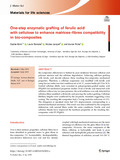 [en] Bio-composites elaboration is limited by poor interfaces between cellulose and polymer matrices and the cellulose degradation. Achieving cellulose grafting with ferulic acid should enhance those resulting bio-composites mechanical properties. Therefore, a cellulose suspension was modified with ferulic acid using laccase under reaction conditions set at 60 °C, acetate buffer pH 5 for 24 h. Grafted cellulose fibrils were extruded in polypropylene-grafted maleic acid (PPgMA) for mechanical properties studies. Even if ferulic acid interacted with cellulose without any enzyme presence, the acid resilience was only detected for cellulose fibres modified with ferulic acid proving the surface grafting. Cellulose fibrillary lengths were unaffected by the enzymatic treatment suggesting a tiny coating. The resulting bio-composites had a Young modulus reduction of 12%. The elongation at maximal stress had 23% improvement, corresponding to a material mechanical resistance. This result was also confirmed by bio-composite elaboration with natural fibres under the same conditions. Ferulic acid and cellulose blends have improved the hardness properties of the resulting bio-composites with PP-PPgMA.