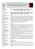 [en] The quality control of medicines is one of the key factors which determine its efficacy. In Africa, particularly in Benin, a large population often uses traditional medicines. Therefore, controlling their quality becomes a major concern for public health. It is in this context that this study was designated to ensure an adequate system of drugs quality control, especially herbal medicines. We collected three different samples (T1, T2 and T3) of Traditional Medicines (MTA) based on Artemisia annua and we controlled their quality. The identification of artemisinin was carried out by Thin Layer Chromatography (TLC) and the quantification by High Performance Liquid Chromatography (HPLC). After analyzing the organoleptic characteristic, the loss of water and the impurities, we found that only T3 was conform to all the specification as MTA. This work opens a new platform of expertise in the field for our team and further a hope for the management of public health in term of the control of MTA.