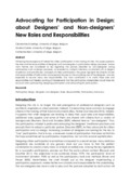 amplifying role of the designers, who are expected to assume many new responsibilities. Our main contribution is to clarify those roles and responsibilities and thereby pointing all the elements that the participatory stakeholders should take into account when participating, designing participation and advocating for participation.