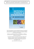 Materials Science and Engineering: A: Structural Materials: Properties, Microstructures and Processing