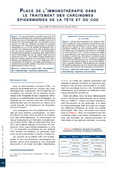 [en] Current recommendations for systemic treatments of head and neck squamous cell carcinoma have been significantly modified with the advent of immunotherapy for a majority of these cancers. Indeed, immune checkpoint inhibitors are now recommended in metastatic disease and in locoregional recurrence not amenable to a local treatment. PD-L1 positive tumours are eligible for immunotherapy in first line and immunotherapy is also available in second line, after failure of platinum based chemotherapy, regardless of PD-L1 expression. Ongoing clinical trials are exploring the role of immune checkpoint inhibitors in the adjuvant setting as well as with radiotherapy as definitive treatment. Immunotherapy has changed the treatment landscape and has improved the prognosis of patients with head and neck squamous cell carcinoma.