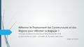 Réformer le financement des Communautés et des Régions pour réformer la Belgique ?