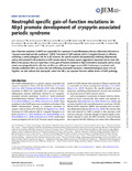 [en] Gain-of-function mutations in NLRP3 are responsible for a spectrum of autoinflammatory diseases collectively referred to as "cryopyrin-associated periodic syndromes" (CAPS). Treatment of CAPS patients with IL-1-targeted therapies is effective, confirming a central pathogenic role for IL-1β. However, the specific myeloid cell population(s) exhibiting inflammasome activity and sustained IL-1β production in CAPS remains elusive. Previous reports suggested an important role for mast cells (MCs) in this process. Here, we report that, in mice, gain-of-function mutations in Nlrp3 restricted to neutrophils, and to a lesser extent macrophages/dendritic cells, but not MCs, are sufficient to trigger severe CAPS. Furthermore, in patients with clinically established CAPS, we show that skin-infiltrating neutrophils represent a substantial biological source of IL-1β. Together, our data indicate that neutrophils, rather than MCs, can represent the main cellular drivers of CAPS pathology.