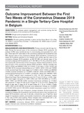 [en] OBJECTIVES: To compare patient management and outcome during the first and second waves of the coronavirus 2019 pandemic. DESIGN: Single-center prospective cohort study. SETTING: Tertiary-care University Hospital. PATIENTS: All adult patients admitted in either the first (from March 15 to May 15, 2020) or second (from October 1 to November 30, 2020) wave of coronavirus disease 2019. INTERVENTIONS: None. MEASUREMENTS AND MAIN RESULTS: Primary outcome was 30-day mortality. During the second wave of the coronavirus disease 2019 pandemic, 33 patients (4.8%) were transferred due to overcrowding and excluded from analysis. There were 341 (first wave of the coronavirus disease 2019 pandemic) and 695 (second wave of the coronavirus disease 2019 pandemic) coronavirus disease 2019 patients admitted to the hospital, with median age first wave of the coronavirus disease 2019 pandemic as 68 (57-80) and second wave of the coronavirus disease 2019 pandemic as 71 (60-80) (p = 0.15), and similar admission severity. For the first wave of the coronavirus disease 2019 pandemic versus second wave of the coronavirus disease 2019 pandemic, 30-day mortality was 74/341 (22%) and 98/662 (15%) (p = 0.007). In the ward, 11/341 (3.2%) and 404/662 (61%) received dexamethasone (p < 0.001); 6/341 (2%) and 79/662 (12%) received high-flow nasal oxygen (p < 0.0001); 2/341 (0.6%) and 88/662 (13.3%) received remdesivir (p < 0.0001); 249/341 (73%) and 0/662 (0%) received hydroxychloroquine (p < 0.0001); and 87/341 (26%) and 128/662 (19%) (p = 0.024) patients were transferred to ICU. On ICU admission, median Sequential Organ Failure Assessment was 6 (3-7) and 4 (3-6) (p = 0.02). High-flow nasal oxygen was given to 16/87 (18%) and 102/128 (80%) (p < 0.001); 69/87 (79%) and 56/128 (44%) received mechanical ventilation (p < 0.001) with durations 17 days (10-26 d) and 10 days (5-17 d) (p = 0.01). Median ICU length of stay was 14 days (5-27 d) and 6 days (3-11 d) (p < 0.001). Finally, 16/87 (18%) and 8/128 (6%) received renal replacement therapy (p = 0.0055); and 64/87 (74%) and 51/128 (40%) needed vasopressor support (p < 0.001). CONCLUSIONS: The main therapeutic changes between the first wave of the coronavirus disease 2019 pandemic and the second wave of the coronavirus disease 2019 pandemic were use of steroids, unrestrictive use of high-flow nasal oxygen for hypoxemic patients, and transfer of patients to other geographic areas in the case of ICU overcrowding. These changes were associated with a decrease in 30-day mortality, ICU admission, and organ support.