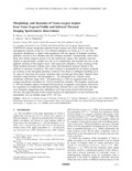 [en] Images obtained by the Visible and Infrared Thermal Imaging Spectrometer (VIRTIS)-M channel instrument onboard Venus Express have been used to retrieve maps and apparent motions of the O[SUB]2[/SUB] ([SUP]1[/SUP]Delta) infrared nightglow on Venus at 1.27 mum. The nightglow distribution is highly inhomogeneous with the regions of brightest emission generally located at low latitudes near the midnight meridian. Unexpectedly some orbits show also intense airglow activity over the south polar region. The spatially resolved airglow is spectacularly variable not only in its morphology and intensity but also in the apparent motions of the airglow small- and large-scale structures. Visual tracking of the bright features allowed to obtain mean zonal and meridional motions related to the subsolar to antisolar circulation. The zonal velocity is dominated by an intense prograde jet (contrary to the retrograde planetary rotation) from dawn to midnight extending up to 22 hours in local time with lower velocities and reversed sign from dusk. Typical zonal velocities range between +60 (prograde) to -50 (retrograde) m/s, whereas most meridional velocities range from -20 (poleward) to +100 m/s (equatorward) with an average meridional circulation of +20 m/s toward low latitudes. The brightest small-scale (~100 km) features appear correlated with locations of apparent convergence which may be a signature of compression and downwelling, whereas this is not evident for the large-scale structures suggesting slow subsidence over large areas mixed with horizontal motions. We argue that part of the tracked motions are representative of real motions at the mesosphere over an altitude range of 95-107 km.