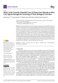 [en] (1) The island of Mayotte, located in the Indian Ocean, possesses remarkable biodiversity. In a previous ethnobotanical study, we already highlighted 69 different plant species used in traditional medicine. Among those, 21 were traditionally employed for skin care by the local populations. The present study aimed to better understand the traditional use of those plants by investigating their in vitro biological activities and, more specifically, their anti-lipoxygenase, antioxidant and anti-tyrosinase properties. (2) These three activities were, respectively, determined by lipoxygenase inhibition, DPPH-reducing potency, and anti-tyrosinase activity assays. (3) Results revealed high biological activities for several plant species, with some of them displaying one strong single activity, while others had at the same time anti-lipoxygenase, antioxidant and anti-tyrosinase effects. (4) Those in vitro biological activities agreed with the traditional use of those plants by the local population. It also highlights the high potential of those species from Mayotte in the development of new cosmetic ingredients for the treatment of many skin affections, such as eczema.