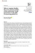 [en] Today, at a time of major downturn in the audiovisual sector, several regions and countries are reconsidering the scope and reach of domestic or regional audiovisual media governance and are developing policy instruments in order to involve transnational Video on Demand (VOD) platforms, such as Netflix, Prime Video, Disney+, in the financing, distribution and visibility of local, national and regional audiovisual content. A key issue that emerges from this backdrop is to provide convincing answers about why public authorities are feeling the urge to develop new regulations towards global VOD streamers in a specific sequence and temporality and to focus on variables, which are expected to understand this cross-national policy momentum for regulating VOD services. In addition, even though transnational VOD services represent disruptive new actors, creating industrial, technological and institutional shock, this disruption does not lead to the same political issue cross-nationally and to the same kind of policy responses. Firstly, the article explores the key outlines that the academic literature highlights in order to understand the regulation of online platforms in the media sectors. Secondly, it provides a cross-national portrayal of policy initiatives towards the VOD streamers, focusing on the EU Member States, Australia, Canada, Mexico and South Africa. Thirdly, the article argues that political struggles over VOD platforms are expected to be framed and fought simultaneously by two crucial variables, dealing with state-society relationships and global interdependence.