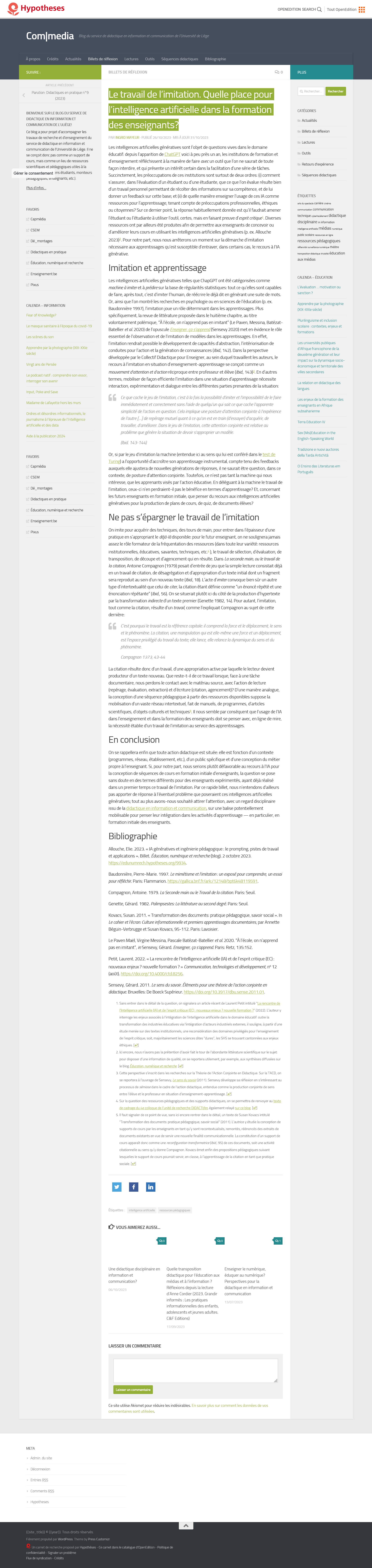 [fr] Les intelligences artificielles génératives sont l’objet de questions vives dans le domaine éducatif: depuis l’apparition de ChatGPT voici à peu près un an, les institutions de formation et d’enseignement réfléchissent à la manière de...