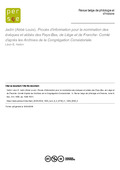 Jadin (Abbé Louis). Procès d'information pour la nomination des évéques et abbés des Pays-Bas, de Liège et de Franche- Comté d'après les Archives de la Congrégation Consistoriale.