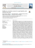 [en] Chemical modification of cellulose fibre is one of the efficient ways to improve the dye uptake and increase the dyeability properties of the fibre. The challenge with dyeing cellulose fibres is poor dye uptake and unsatisfactory dye fixation. The major scope of this study is to determine the optimum dyeing conditions that will guarantee the dye fastness onto the cotton fabric. Four modifying agents (sodium chloride (NaCl), ammonium sulphate ((NH4)2SO4), hydrated sodium carbonate (Na2CO3•10H2O), and acetic acid (CH3COOH)) in aqueous form were employed in the treatment of the cotton fabrics in a slacked condition. The study examined changes in thermodynamic parameters due to dyeing modified cotton fabric with malachite green (MG) dye. The equilibrium percentage dye exhaustions (%E), which is a measure of dye uptake by the fabrics were determined prior to and post-modification of the cellulose at varying concentrations and temperatures. The optimum values of %E obtained for the modification agents viz: CH3COOH, NH4)2SO4, NaCl, and Na2CO3•10H2O were: 89.71%, 88.57%, 85.71%, and 68.70% at concentration 2% v/v and temperature of 70 °C. The%E of modified cotton fabric dyed with malachite green was optimum in acidic conditions (i.e.CH3COOH with%E of 89.71%) followed by (NH4)2SO4; 88.57%, which undergoes hydrolysis in an aqueous solution. This was then followed by NaClaq (i.e. a neutral solution) and Na2CO3•10H2O (i.e. an alkaline solution). However, all modifying agents used enhanced the dye uptake. The values of partition coefficient (K) were in the order of 1307.73 L.tkg−1, 1162.34 L.tkg−1, 899.69 L.tkg−1, and 329.23 L.tkg−1, respectively at 70 °C; while the values for standard affinities (-Δμθ) were 20,463.94 kJ.mol−1, 20,127.85 kJ.mol−1, 19,397.40 kJ.mol−1, and 16,530.65 kJ.mol−1. This implies a correlation between the equilibrium exhaustion and standard affinity of dyed modified cotton fabric. The values of entropy change (ΔSθ) are 175.53 J.mol−1K−1, 141.29 J.mol−1K−1, 148.16 J.mol−1K−1, 81.023 J.mol−1K−1 and 255.10 J.mol−1K−1 for the four modifying agents, respectively, which implies that the reaction is feasible (spontaneous) whereas ΔHθ are -39,729 kJ.mol−1, -28,144 kJ.mol−1, -31,531 kJ.mol−1, -11,669 kJ.mol−1 and -73,928 kJ.mol−1, respectively. The negative values of ΔHθ suggested that the reactions were exothermic. This study established that modifying agents on cotton fabric is one of the finest ways to improve the affinity between dye and fabric, thereby significantly reducing the time, cost, and stress required to achieve an optimal result in the dyeing process.