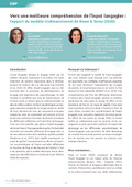[fr] Depuis de nombreuses années, le langage adressé à l’enfant, ou input, fait l’objet de multiples recherches et est maintenant reconnu comme jouant un rôle capital dans le développement du langage chez l’enfant. Pour apprendre le langage, un enfant a besoin d’entendre des sons, des mots, des structures de phrases et différentes manières d’utiliser ce langage. Il n’est donc pas étonnant de constater qu’un input variable, en quantité et qualité, entraîne un apprentissage variable du langage par l’enfant. Ce papier propose de présenter et synthétiser l'article de Meredith Rowe & Catherine Snow (2020). Que signifie exactement un input de qualité ? Comment peut-on décrire cet input ? Les caractéristiques de l’input sont-elles différentes en fonction de l’âge et des besoins de l’enfant ? Ce sont à ces questions que le modèle théorique récent développé par Meredith Rowe et Catherine Snow (2020) a tenté de répondre. Les auteures s’intéressent à la qualité du langage adressé à l’enfant et plus spécifiquement aux caractéristiques de l’input qui favorisent le développement du langage chez le jeune enfant. Les autrices décrivent le LAE selon trois dimensions (interactive, linguistique et conceptuelle) et à différents moments de la vie du jeune enfant, allant de la période du nourrisson à la période préscolaire. Pour chaque dimension de l’input, nous compléterons la proposition théorique des chercheuses en ajoutant des conseils pratiques adaptés aux trois périodes développementales décrites. Ces conseils, destinés aux logopèdes et repris dans des zones encadrées, seront présentés sous forme d’objectifs à poursuivre et de moyens pour atteindre les objectifs définis.