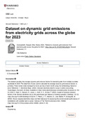 [en] This dataset provides the average dynamic grid emission factors for electricity grids from multiple countries worldwide for 2023. The data from [1] was used to calculate the average dynamic grid emission factors in gCO2eq. These values were averaged by hours per day of each month using the methodology based on [2,3]. Reference: 1. Electricity Maps. (2024). Granular electricity data for scope 2 carbon accounting. Copenhagen, Denmark. [Online]. Available at: https://www.electricitymaps.com/data-portal. Accessed on Oct. 02, 2024. 2. Hepf, C., Bausch, K., Lauss, L., Koth, S. C., & Auer, T. (2022). Impact of dynamic emission factors of the German electricity mix on the greenhouse gas balance in building operation. Buildings, 12(12). https://doi.org/10.3390/buildings12122215. 3. Peters, J. F., Iribarren, D., Juez Martel, P., & Burguillo, M. (2022). Hourly marginal electricity mixes and their relevance for assessing the environmental performance of installations with variable load or power. Science of The Total Environment, 843, 156963. https://doi.org/10.1016/j.scitotenv.2022.156963. (2024-11-18)