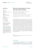 [en] Previous studies have reported an accumulation of nitrous oxide (N2O) on shallow continental shelves of the western Arctic Ocean. In this study, we sampled seawater profiles for N2O measurements in the eastern Arctic shelves, in the North Kara Sea, in the context of the Arctic Century Expedition. Despite some variability in the vertical distribution, we typically observe an accumulation of N2O in shelf bottom waters, which correlates with a fixed nitrogen (N) deficit. Longer residence times on the shelf promote greater N2O enrichment and a larger fixed N deficit. These observations point towards N2O production at depth, linked to benthic denitrification processes that are intensified on productive shelve areas. However, in surface waters, physical processes – i.e. temperature-dependent solubility and air-sea exchange – emerge as the main factor controlling N2O concentrations. We observe low saturations of 80% at the surface of open ocean stations influenced by water that has previously flowed beneath sea ice. Arctic surface water becomes undersaturated due to cooling and remains undersaturated due to limited air-sea exchange. River supply does not exert a discernable influence on N2O concentrations of the studied area. This study reveals the potential of the Arctic Siberian shelves as a sink of atmospheric N2O during the summer.