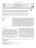 [en] In this study, dysphagia-friendly diets were prepared based on the interaction between polysaccharides from peach, namely Meirui (MR), Yangshan (YS) and Cons758 (Cons), and soy protein isolate (SPI). MR-alcohol insoluble residues (AIR) and YS-AIR were low methoxylated polymers, while Cons-AIR was high methoxylated polymer. According to the international dysphagia diet standardization initiative, YS-SPI and MR-SPI could be qualified as level 5-minced/moist dysphagia diets. Following SPI addition, the apparent viscosity, G′ and G″ of peach pulp-SPI complexes were significantly increased. At the shear rate of 10 s−1, corresponding to oral processing, MR-SPI performed the highest apparent viscosity (35.2 Pa s), followed by YS-SPI (33.5 Pa s). Additionally, the SPI-treated strategy pronounced improved the hardness, springiness, adhesiveness and chewiness of complexes. Both YS-SPI and Cons-SPI showed the reduced particle size, alongside the uniform distribution, owing to the strong hydrogen bonding and electrostatic interaction between peach pulp substances and SPI, which was confirmed by FT-IR result. The biggest ζ-potential value (−23.55 mV) was found in YS-SPI. Meanwhile, compared with peach pulps, the highest increase ratio (87.94%) of water holding capacity was depicted in MR-SPI. LF-NMR analysis revealed immobilized water was dominant in peach pulp-SPI. The results suggested that MR was promising for the optimal choice to form gel food for people with swallowing problems.