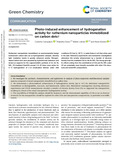 [en] Ruthenium nanoparticles immobilized on environmentally benign luminescent carbon dots act as hydrogenation catalysts, whereby light irradiation results in greatly enhanced activity. Nitrogen-doped carbon dots were prepared by hydrothermal treatment, and served as supports for the organometallic synthesis of 2.1 nm Ru NPs. UV-irradiated Ru@CDs proved 1.5–13 times more active for C[double bond, length as m-dash]C hydrogenation of α–β unsaturated ketones under mild conditions (3.5 bar H2, 60 °C, in water/butan-1-ol) than when used in the dark. Reference experiments and mechanistic investigations rationalize this activity enhancement by a transfer of electron density from the irradiated CDs to the Ru NPs. The strong synergistic effects arising from the combination of CDs and Ru NPs under UV are potentially more broadly accessible with other CDs structures and metal NPs compositions.