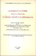 1986 • In Bellenger, Yvonne (Ed.) Le temps et la durée dans la littérature au moyen-âge et à la renaissance : actes du colloque organisé par le Centre de recherche sur la littérature du moyen-âge et de la renaissance de l'Université de Reims (novembre 1984)