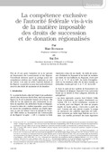 La compétence exclusive de l'autorité fédérale vis-à-vis de la matière imposable des droits de succession et de donation régionalisés