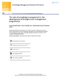 [en] The purpose of this study was to investigate the role of knowledge management in the development of drought crisis management programmes from the viewpoint of agricultural beneficiaries in Iran by exploring the tacit knowledge of beneficiaries, using explicit knowledge, and integrating tacit and explicit knowledge. This survey study was conducted using a stratified random sampling method to select 384 people who were implementing drought crisis management programmes. Data were collected with a questionnaire. SPSS21 software was used to analyse the collected data. The results show a positive and significant relationship between knowledge management components and development of drought crisis management programmes. Among the six components of knowledge management, knowledge maintenance had the greatest impact on the development of drought crisis management programmes. The present study provides a deep understanding of the relationship between knowledge management and the development of drought crisis management programmes in drought-affected areas to improve agricultural activities.