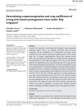 [en] In spite of the importance of increasing water shortages in most pomegranate production regions, there is not sufficient information about the water requirement and crop coefficients (Kc) of pomegranate trees under various conditions (e.g., plant cultivar and age and irrigation system). The aim of this study was to measure evapotranspiration during three growing seasons (2013, 2015, and 2016) and to determine Kc of young and mature pomegranate (Punica granatum L.) trees under drip irrigation in Iran. The soil water balance approach was applied to determine crop evapotranspiration (ETc) using soil water content measured during the growing seasons. The ratio of measured ETc to reference evapotranspiration calculated according to the Penman–Monteith equation provided the Kc values. According to the findings, from bud burst to peak season, daily Kc values for young pomegranate trees ranged from 0.18 to 0.70, 0.22 to 0.89, and 0.23 to 0.95 in 2013, 2015, and 2016, respectively. For mature pomegranate trees, these values varied between 0.26 to 1.15, 0.21 to 1.25, and 0.30 to 1.08 in 2013, 2015, and 2016, respectively. From bud burst to peak season, the total ETc for young pomegranate trees was 711, 905, and 934 mm and for mature pomegranate trees 1,172, 1,086, and 1,138 in 2013, 2015, and 2016, respectively. The results of this study are applicable to accurate water allocation, precision irrigation scheduling, and design of irrigation systems in pomegranate orchards.