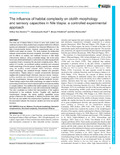 [en] The inner ear of teleost fishes is known to serve both auditory and vestibular functions. Many studies have compared otoliths from different species and attempted to understand the observed differences within the light of environmental factors. However, experimental data on how otoliths could adapt are scarce. This study explores the relationship between environmental structural complexity and otolith morphology, and its effects on auditory and vestibular functions in Nile tilapia (Oreochromis niloticus). Using a controlled design, fishes of the same brood were distributed between a control tank and a tank equipped with suspended chains, only increasing the structural complexity. After a period of five months, we monitored auditory sensitivity and compared otolith morphology of both groups. Auditory capacities were measured using Auditory Evoked Potential (AEP) technique whereas otolith morphology was assessed through classical and geometric morphometrics. Tilapias raised in complex environments developed sagittae with increased length, thickness, area and volume. However, auditory sensitivity was consistent across both groups, suggesting that the morphological changes solely affected vestibular function. These findings support otolith morphology can adapt to fish surrounding environment, here to improve balance and manoeuvrability in complex settings. This reaffirms otolith sagittae not only support hearing but fulfil multiple roles to cope with environmental challenges. This also constitutes an indirect first demonstration of the sagitta's involvement in the vestibular function. Together with significant morphological changes, the similar auditory capabilities across groups underscore the complexity of defining functional roles within the inner ear and reaffirm the mixed function hypothesis, challenging the association between the observed variation and inner ear specific functions.