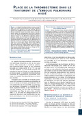 [fr] La maladie thromboembolique veineuse compliquée d’une embolie pulmonaire est une cause fréquente d’admission aux urgences et en soins intensifs. Elle est grevée d’une mortalité élevée en l’absence d’un traitement précoce et adapté. Sa prise en charge repose sur un diagnostic rapide, une anticoagulation pour éviter la récidive et, pour les patients présentant une instabilité hémodynamique, le recours à une fibrinolyse systémique. Depuis plusieurs années, des techniques de radiologie interventionnelle ont été élaborées pour traiter les patients les plus sévèrement atteints en complément ou en alternative de la fibrinolyse. Parmi ces techniques, la thrombectomie mécanique, au vu de son essor récent, mérite d’être intégrée dans notre arsenal thérapeutique. Nous proposons un algorithme décisionnel original intégrant cette technique, basé sur une revue de la littérature et utilisé avec l’appui d’une équipe pluridisciplinaire de prise en charge de l’embolie pulmonaire dans notre institution.