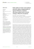 [en] Although Mollisols are renowned for their fertility and high-productivity, high carbon (C) losses pose a substantial challenge to the sustainable provision of ecosystem services, including food security and climate regulation. Protecting these soils with a specific focus on revitalizing their C sequestration potential emerges as a crucial measure to address various threats associated with climate change. In this study, we employed a modeling approach to assess the impact of different fertilization strategies on crop yield, soil organic carbon (SOC) stock, and C sequestration efficiency (CSE) under various climate change scenarios (baseline, RCP 2.6, RCP 4.5, and RCP 8.5). The process-based SPACSYS model was calibrated and validated using data from two representative Mollisol long-term experiments in Northeast China, including three crops (wheat, maize and soyabean) and four fertilizations (no-fertilizer (CK), mineral nitrogen, phosphorus and potassium (NPK), manure only (M), and chemical fertilizers plus M (NPKM or NM)). SPACSYS effectively simulated crop yields and the dynamics of SOC stock. According to SPACSYS projections, climate change, especially the increased temperature, is anticipated to reduce maize yield by an average of 14.5% in Harbin and 13.3% in Gongzhuling, and soybean yield by an average of 10.6%, across all the treatments and climatic scenarios. Conversely, a slight but not statistically significant average yield increase of 2.5% was predicted for spring wheat. SOC stock showed a decrease of 8.2% for Harbin and 7.6% for Gonghzuling by 2,100 under the RCP scenarios. Future climates also led to a reduction in CSE by an average of 6.0% in Harbin (except NPK) and 13.4% in Gongzhuling. In addition, the higher average crop yields, annual SOC stocks, and annual CSE (10.15–15.16%) were found when manure amendments were performed under all climate scenarios compared with the chemical fertilization. Soil CSE displayed an exponential decrease with the C accumulated input, asymptotically approaching a constant. Importantly, the CSE asymptote associated with manure application was higher than that of other treatments. Our findings emphasize the consequences of climate change on crop yields, SOC stock, and CSE in the Mollisol regions, identifying manure application as a targeted fertilizer practice for effective climate change mitigation.
