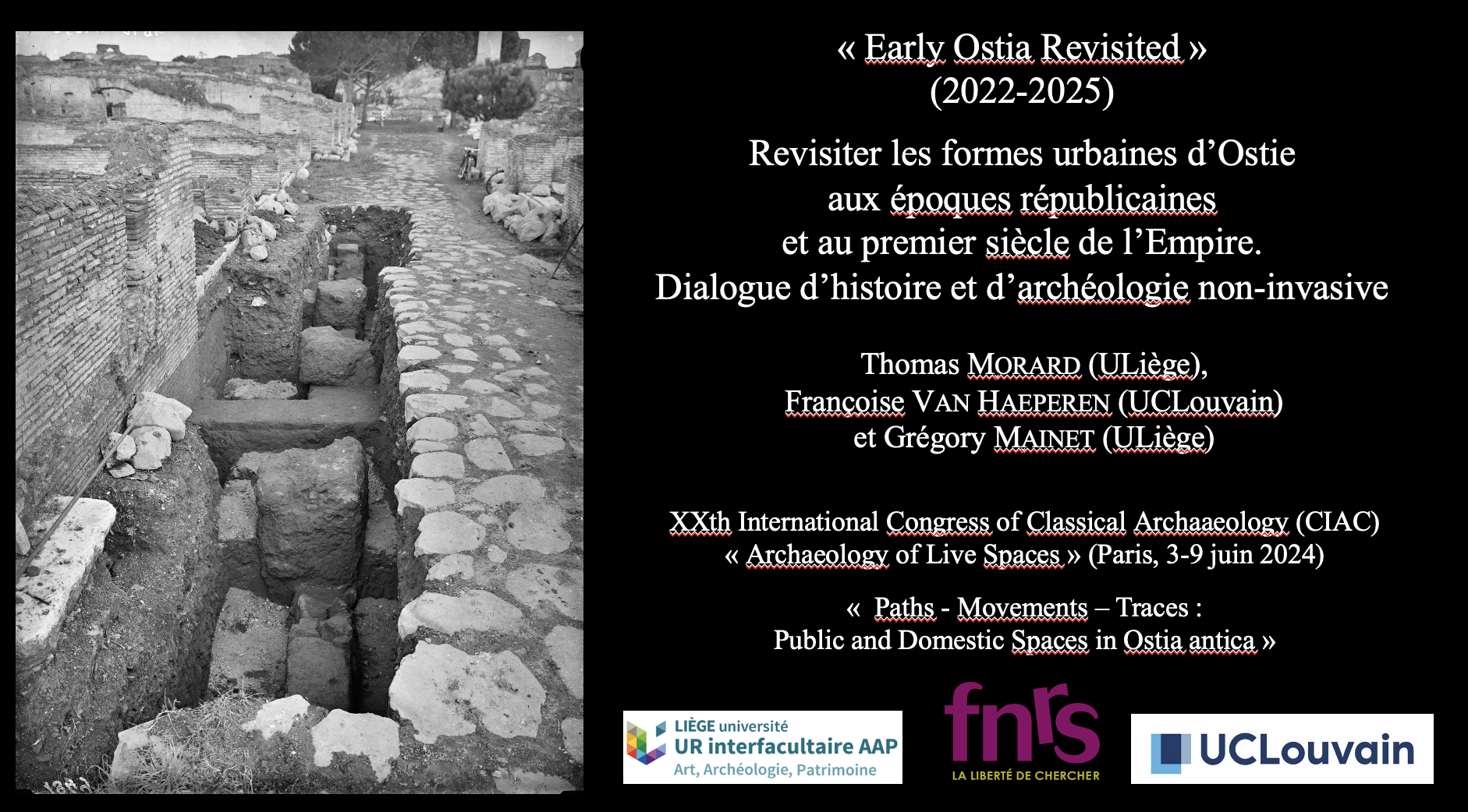[fr] Les premières formes urbaines d’Ostie (IVe s. av. J.-C. - Ier s. ap. J.-C.) demeurent méconnues. Elles apparaissent très fragmentaires dans la Topografia Generale publiée en 1953 et aucune étude détaillée de ces phases n’a été proposée depuis lors, malgré de nouvelles découvertes, comme la Domus dei Bucrani exhumée sous la Schola del Traiano (Université Lumière Lyon 2 et ULiège). De manière générale, les phases urbaines d’époque républicaine et des premiers temps de l’Empire n’ont jamais été étudiées globalement, parce qu’elles ont été en grande partie recouvertes par les structures des phases médio-impériales (IIe-IIIe s.) et tardo-antiques (IVe-VIe s.) : une lacune que nous souhaitons combler en faisant dialoguer données archéologiques (ULiège) et historiques (UCLouvain). Afin de pallier les problèmes induits par la reconstruction de la ville au IIe s. ap. J.-C., les promoteurs de ce projet de recherche interdisciplinaire entendent combiner différentes méthodes d’investigation non-invasives pour éclairer le développement de la forme urbaine d’Ostie depuis sa fondation jusqu’au Bauboom consécutif à l’aménagement du Port de Trajan. Dans cette optique, quatre approches archéologiques ont été retenues : a) le dépouillement de la documentation inédite des fouilles anciennes ; b) l’étude de structures appartenant aux derniers temps de la République et aux premiers temps de l’Empire encore visibles sur le site archéologique ; c) des prospections Ground-Penetrating Radar ; d) l’étude du sous-sol au moyen de carottages. Les résultats obtenus lors de ces enquêtes seront confrontés aux informations fournies par les sources épigraphiques, littéraires et juridiques, afin de mettre en évidence les acteurs des changements urbains et d’ancrer les résultats de l’étude archéologique dans l’histoire d’Ostie, dont le destin a toujours été lié à celui de l’Urbs et de son imperium. [en] The urban forms of early Ostia (4th c. BC - 1st c. AD) remain poorly known. They are fragmented in the Topografia Generale published in 1953 and no detailed study of these phases has been proposed since then despite new findings, such as the Domus dei Bucrani unearthed under the Schola del Traiano (Université Lumière Lyon 2 and ULiège). Broadly speaking, the urban phases of the Republican and early Imperial periods have never been studied as a whole, because they have been largely concealed under the structures of the mid-Imperial (2st-3rd c. AD) and Late Antique phases (4th-6th c. AD): this is a gap that we aim to fill by bringing together archaeological (ULiège) and historical (UCLouvain) evidence. In order to overcome the problems caused by the reconstruction of the city in the 2nd c. AD, the promoters of this interdisciplinary research project intend to combine different non-invasive methods of investigation to shed new lights on the development of the urban form of Ostia from its foundation until the Bauboom following the construction of Trajan’s Harbour. To this end, four archaeological approaches have been selected: a) scrutinizing unpublished archival evidence; b) inspecting Republican and early Imperial structures that are still visible/accessible across the archaeological site; c) carrying out Ground-Penetrating-Radar surveys; d) studying the subsoil by core sampling. The results of these investigations will be compared with the information provided by epigraphic, literary and legal sources in order to highlight the actors of the urban changes and to anchor the archaeological data in the history of Ostia, whose destiny was always linked to that of the Urbs and its imperium.