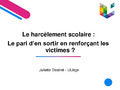 Le harcèlement scolaire : Le pari d’en sortir en renforçant les victimes ?