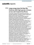 [en] Understanding how the traits of lineages are related to diversification is key for elucidating the origin of variation in species richness. Here, we test whether traits are related to species richness among lineages of trees from all major biogeographical settings of the lowland wet tropics. We explore whether variation in mortality rate, breeding system and maximum diameter are related to species richness, either directly or via associations with range size, among 463 genera that contain wet tropical forest trees. For Amazonian genera, we also explore whether traits are related to species richness via variation among genera in mean species-level range size. Lineages with higher mortality rates-faster life-history strategies-have larger ranges in all biogeographic settings and have higher mean species-level range sizes in Amazonia. These lineages also have smaller maximum diameters and, in the Americas, contain dioecious species. In turn, lineages with greater overall range size have higher species richness. Our results show that fast life-history strategies influence species richness in all biogeographic settings because lineages with these ecological strategies have greater range sizes. These links suggest that dispersal has been a key process in the evolution of the tropical forest flora.