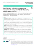 RESULTS: A logistic regression based on handcrafted features was found to perform on par with a direct deep learning approach, and the former was selected for simplicity. Volumetric and intensity-based features of lesions and healthy lung parenchyma proved most predictive, in addition to patient age and sex. The model reached an area under the curve of 0.78 on the challenge test set and 0.74 on the external test set. The performance did not drop for the subset acquired at a later stage of the pandemic.