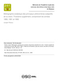 [fr] Troisième supplément des "Bibliographie analytique des principaux phénomènes subjectifs de la vision" par Joseph Plateau et qui englobe les année 1880, 1881 et 1882. Divisé en six sections, chacune étant composé d'une bibliographie d'articles en lien avec la thématique de section et dont l'auteur à apporté un commentaire sur chaque articles.