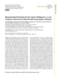 [en] Our understanding of the role of tropical lakes in regional carbon budgets remains hampered by a lack of data covering the vast diversity of lake types and settings. Here, we provide a first comprehensive survey of the carbon (C) biogeochemistry of the Lake Alaotra system, a large shallow lake (surface of 200 km2 and maximum depth of 2 m) surrounded by an extensive floodplain and rice fields located in the highlands of Madagascar. The current landscape in the region is grassland-dominated and dotted by major gullies called “lavaka”, which have historically been claimed to lead to high erosion rates and would, thus, also mobilize large amounts of soil C. We investigated the seasonal variability in the concentrations and stable isotope ratios of inorganic and organic C pools; moreover, we examined a range of other relevant proxies, including physicochemical parameters, dissolved CO2 and CH4 concentrations, total alkalinity, and chlorophyll a (Chl a) from spatially distributed sampling and seasonal monitoring of several rivers. While rivers were found to carry high total suspended matter (TSM) loads with a modest particulate organic C (POC) content, the lake itself and its outflow were characterized by much lower TSM values and a high relative contribution of POC to TSM (% POC). The POC concentration of the outflow (13.0±7.7 mg L−1) was substantially higher than in the inflowing water (1.9±2.1 mg L−1), and δ13C values were also distinct between inflowing water ( ‰) and the lake ( ‰) or its outflow ( ‰). Similarly, the lake outflow was surprisingly rich in dissolved organic carbon (DOC) (9.5±1.4 mg L−1) compared to inflowing water (2.6±1.1 mg L−1). This indicates that the lake and its surrounding wetlands act as a substantial source of additional organic C which is exported downstream. The CO2 and CH4 concentrations in inflowing and outflowing rivers were substantially higher than in lake waters, and they peaked during the rainy season due to lateral inputs from wetlands. However, sources of POC and DOC were uncoupled: δ13C data indicated that marsh vegetation was the main source of net DOC inputs, while phytoplankton contributed substantially to POC in the lacustrine waters, at least during parts of the sampling period. Indeed, lake suspended matter has relatively low POC Chl a ratios (143–564, particularly during the May sampling period), high % POC (10 % to 29 %), and δ13C values ( ‰) distinct from those in marsh-derived organic matter. Despite the evidence for phytoplankton production as a contributor to the lake POC pool, the lake acted as a net source of CO2 to the atmosphere, likely due to the high C inputs from the surrounding marshes and to sediment respiration (considering the shallow water depth). Nevertheless, the partial pressure of CO2 (pCO2) levels in the surface waters of the lake were lower than those in the inflowing and outflowing rivers. This reduction is likely due to the combined effects of phytoplankton production, which assimilates CO2 during photosynthesis, and degassing processes. When CO2-supersaturated riverine water enters the open lake, increased turbulence caused by wind fetch enhances gas exchange with the atmosphere, allowing CO2 to escape more readily from the water column. The biogeochemical functioning of Lake Alaotra differs substantially from the large and deeper East African (sub)tropical lakes and is more similar to lakes surrounded by flooded forests in the Congo River basin, likely due to a combination of its large surface area and shallow water depth and the large extent of surrounding wetlands and floodplains. It acts as an abrupt element in the land–ocean continuum of the catchment, whereby the biogeochemical characteristics of the Maningory River (i.e. the lake outflow) are strongly determined by processes taking place in Lake Alaotra and its wetlands, rather than being reflective of characteristics and processes further upstream in the catchment.