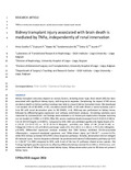[en] Kidney transplant outcomes depend on various factors, including donor type. Brain death (BD) has been associated with significant kidney injury, with long-term sequelae. Deciphering the impact of BD versus circulatory death on kidney pathophysiology may help to prevent kidney transplant injury. We developed 3 rat models: 6h of BD (DBD, n=10); circulatory death (DCD, n=10) with 20min of warm ischemia; and 6-hour BD with renal denervation prior to BD (DNRV, n=6). RNA-seq was performed on kidney tissue, followed by differential gene expression and pathway enrichment analyses. Circulating cytokines were measured by Luminex/ELISA. Our findings were validated in 10 human pre-implantation biopsies matching our rat models (n=5 DBD; n=5 DCD). After BD, serum creatinine levels increased from 0.33 [0.31-0.38] to 0.61 [0.59-0.67]mg/dL (p<0.0001). Compared to DCD, DBD rats exhibited significantly higher levels of IL-6 (26.67 [19.10-32.35] vs. 10.32 [9.76-13.28]ng/mL, p=0.006) and TNFᵬ (21.98 [16.48-32.60] vs. 9.64pg/mL [7.96-11.13], p=0.0012), and lower levels of IL-10 (1.28 [1.11-1.65] vs. 1.79 [1.46-2.18]ng/mL, p=0.049). Differential expression analysis revealed that DBD kidneys exhibited CD11b-associated inflammation, caspase-3-mediated apoptosis, and TNFᵬ-driven injury (p=7.34×10-7; z-score=2.475), while DCD kidneys activated EIF2/NRF2 stress-response pathways. Notably, denervation did not mitigate BD-induced injury. Human biopsies confirmed the positive enrichment of inflammatory pathways (p=0.01 to 1.18×10-7) in DBD compared to DCD, with 6 out of the top 15 pathways shared across species. Our findings highlight specific mechanisms affecting differently kidneys derived from DBD vs. DCD donors, with a potential role of TNFᵬ in BD-associated kidney injury. Kidney denervation prior to BD does not prevent kidney injury.