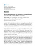 [en] Cooling and crystallization of Mercury's magma ocean likely formed a layered mantle composed of various proportions of minerals such as olivine, orthopyroxene, clinopyroxene, sulfides, and plagioclase, each with distinct thermal properties (e.g. thermal diffusivity, thermal conductivity, heat capacity, and melting temperature). Planetary thermal evolution models often consider an homogeneous mantle and treat these properties as constant or only varying with pressure and/or temperature. Their dependence on composition and modal proportions  is usually neglected, but can have a large impact on the modeled evolution.Recent experimental studies gave access to the thermal conductivity and diffusivity of olivine, orthopyroxene and clinopyroxene. We calculated the thermal conductivity and diffusivity profiles of Mercury’s mantle assuming it is made of the Mg-rich endmembers forsterite, enstatite or diopside (i.e. the most likely phases occurring in the reduced interior of Mercury). We used a 1D parameterized model to simulate the thermal evolution of the planet with conductivity values varying from 1 to 4 Wm-1K-1, covering the above range of different mineralogies. We investigated several scenarios with (1) homogeneous conductivity over the whole mantle; (2) two layers characterized by different conductivity values. We then analyzed the results in terms of crust production and duration of mantle melting.At pressures and temperatures relevant for Mercury's mantle, enstatite and diopside have higher conductivities and diffusivities than forsterite. This has a direct impact on the thermal evolution of the planet and on the melting of a fertile layer. Indeed, the more conductive the mantle is, the shorter its melting duration. Therefore, a mantle characterized by the conductivity of enstatite or diopside would promote a shorter melting time than one with conductivity of forsterite. In a two-layer mantle, melting duration is lower when conductivity of the top layer is higher compared to the bottom layer. The melting duration would thus be shorter for a mantle with a refractory olivine-like mantle conductivity at the base and an enstatite- and diopside-bearing fertile mantle-like conductivity in the upper part of the stratigraphic column. Besides the thermal conductivity, other parameters such as solidus temperature and heat production rate will be taken into account to obtain a consistent picture of the influence of mineralogical-dependent parameters on Mercury's evolution.Accounting for variations in thermal conductivity and diffusivity due to heterogeneity in the mantle is therefore crucial in modeling planetary interiors. These factors significantly affect key parameters like crust thickness and the duration of volcanism.