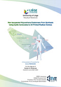 [en] Polyurethanes (PUs) are among the most widely produced polymers in the world and are used in many applications. Thanks to their remarkable mechanical performances combined with their proven in vivo biocompatibility, they are also currently employed in the medical sector. However, they are industrially produced from highly toxic isocyanate precursors, which causes serious environmental and health concerns. As regulations increasingly restrict the use of isocyanate compounds, exploring greener and safer alternatives to produce PUs has become imperative. The research of health-friendlier synthesis processes has therefore triggered the emergence of a new family of PUs called non-isocyanate polyurethanes (NIPUs). Among the latter, those produced from bifunctional cyclic carbonates and diamines take center stage, as these cyclic carbonates are easily accessible by a more ecofriendly synthesis, i.e., the quantitative catalytic coupling of CO2 to bifunctional epoxides or propargylic alcohols. They produce NIPUs called either poly(hydroxy-urethane)s (PHUs) or poly(hydroxy-oxazolidone)s (PHOxs), respectively. These NIPUs exhibit structures that differ from those of isocyanate- based PUs, as they bear additional hydroxyl groups (in addition to cyclic urethanes for PHOx) which impart specific properties. This thesis aims to explore the impact of these structural differences on the properties of NIPUs, while highlighting their potential to design biomaterials of choice in order to develop novel alternatives to meet the needs of the healthcare sector. Indeed, as few reports have emerged for the design of PHU, and even none for PHOx biomaterials, this thesis focuses on the development and the characterization of various NIPUs (both PHUs and PHOxs) for biomedical applications, especially in the cardiovascular field. Different systems are envisaged to mainly produce implantable elastomers, such as the thermal and photo-crosslinking of linear PHUs, some of which are functionalized with another CO2-sourced molecule, the development of PHOx networks for drug-eluting implants, of easily (re)processable thermoplastic PHOxs, or of PHOx-based covalent adaptable networks. In each of these systems, particular attention is paid to the printability of these materials to produce 3D printed implants which are customizable according to patients. In addition, their biocompatibility and hemocompatibility are assessed by means of a series of biological tests to ensure their non-toxicity in view of their future implantation, especially in contact with the cardiovascular system. We therefore position both PHUs and PHOxs as unprecedented safer and greener options for the design of future (customizable) medical devices.