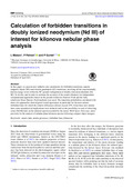atomic data; atomic processes; forbidden lines; kilonovae; Atomic data; Atomic process; Electric quadrupoles; Forbidden lines; Forbidden transitions; Kilonova; Neodymiums (Nd); Phase analysis; Radiative rates; Relativistics; Atomic and Molecular Physics, and Optics; Condensed Matter Physics